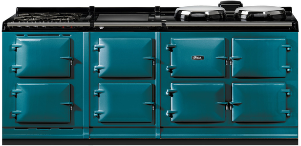 The R7 offers classic AGA styling and boasts the gleaming vitreous enamel finish which takes three days to achieve at our factory in Shropshire, England. Built and manufactured to our meticulous standards, these models feature three cast-iron ovens and two independently controlled hotplates (boiling and simmering plates), while the 150 models feature two additional ovens for slow cooking and warming, and the choice of either a warming plate or a single-zone induction cooktop.These ranges are highly detailed, from the AGA embossed cast-iron oven doors to the branded handrails and black flush fitting side panels.