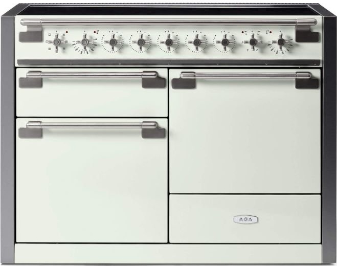 Complimented by stunning new cruciform knobs with knurling, shipped standard in brushed nickel, but also available as after-market options in five additional versatile hardware finishes (polished chrome, polished brass, polished copper, brushed brass, and black anodized aluminum), the re-imagined AGA Elise 48" dual fuel model confidently steps into the spotlight along side its classic AGA siblings.