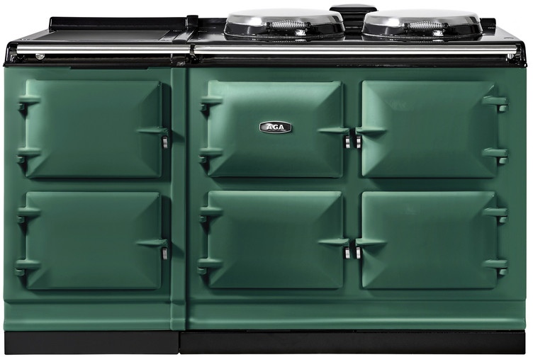 The new electric AGA eR7 provides a cast-iron baking oven, roasting oven and simmering oven and the 150 model offers two additional steel ovens for slow cooking and warming.