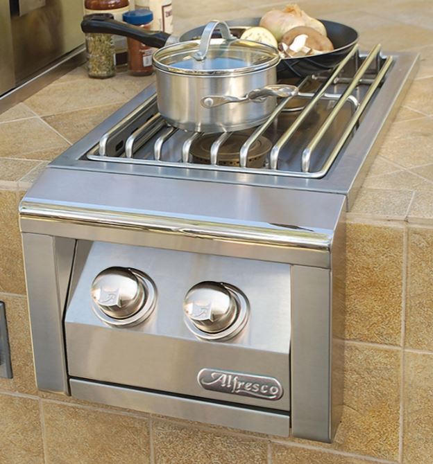 An Alfresco side burner is the perfect complement sitting next to your grill for boiling, heating, and simmering anything you need to put into a pot. Built from all commercial stainless steel with heli-arc welded seams, the side burner features two high-performance burners with electronic ignition.Read More